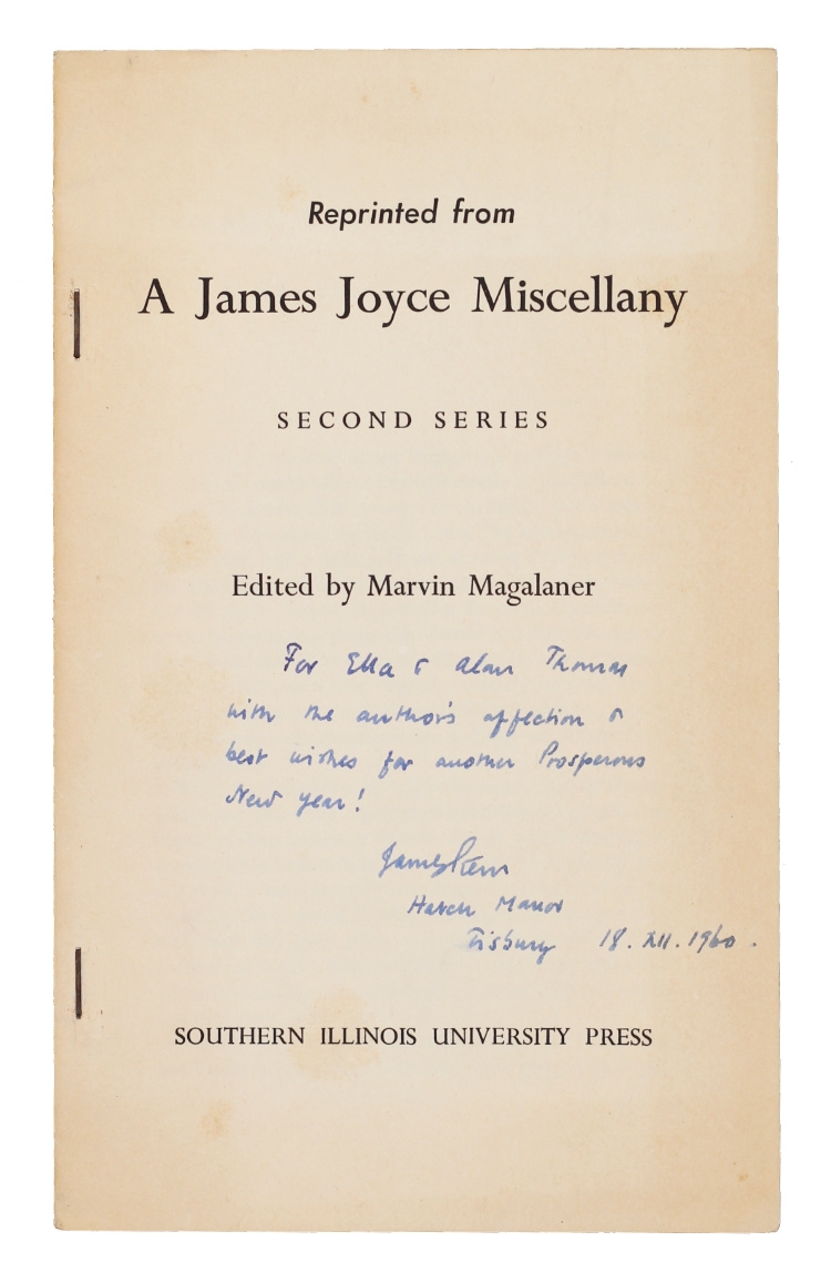JOYCE, James Augustine Aloysius – James Andrew STERN.James Joyce: A First Impression [drop-head title]. [Carbondale, IL]: Southern Illinois University Press, [?1959]. Inscribed.