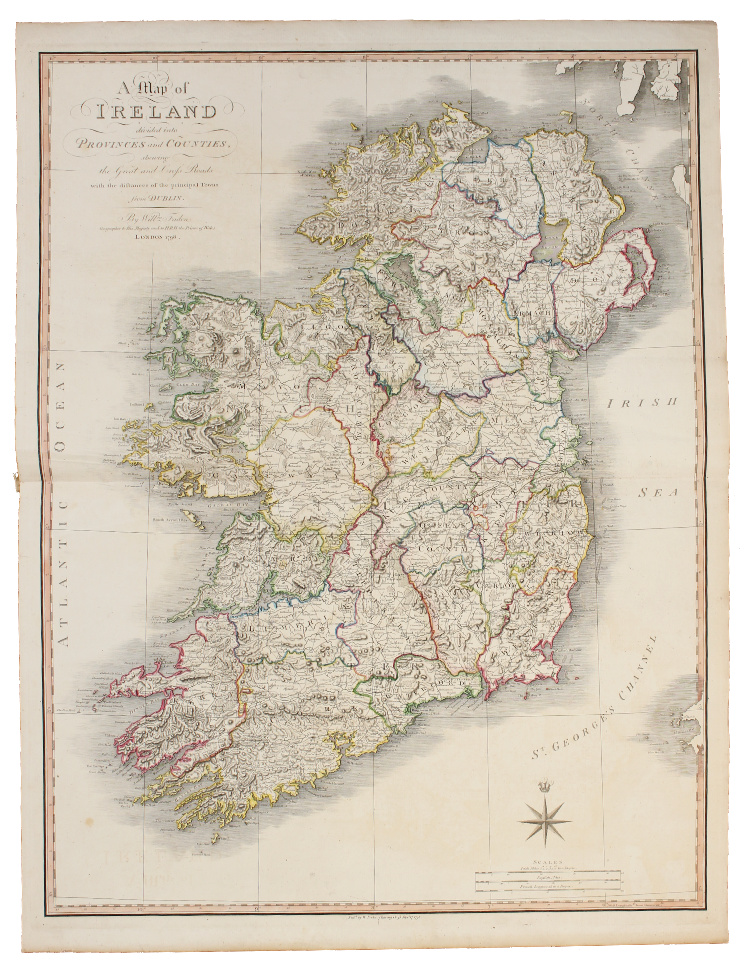 FADEN, William. ‘A Map of Ireland Divided into Provinces and Counties, Shewing the Great and Cross Roads with the Distance of the Principal Towns from Dublin’. London: William Faden, 17 September 1798.
